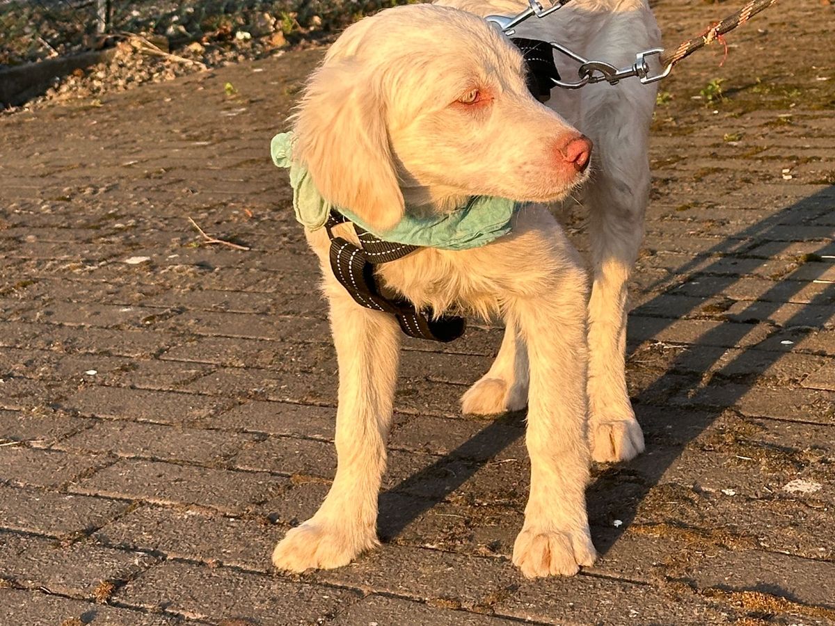 Aron is lief sociaal en.soms wat ontdeugend daarom is het ook maar een.pup